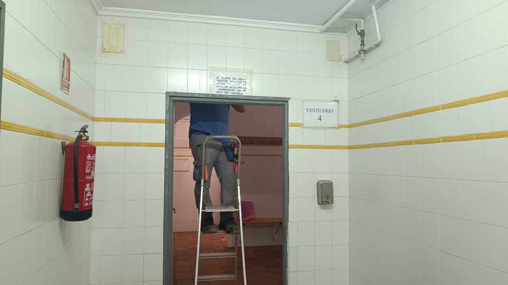 Además, se están realizando trabajos de reparación en las puertas de los vestuarios, garantizando su correcto funcionamiento y el confort de los usuarios.