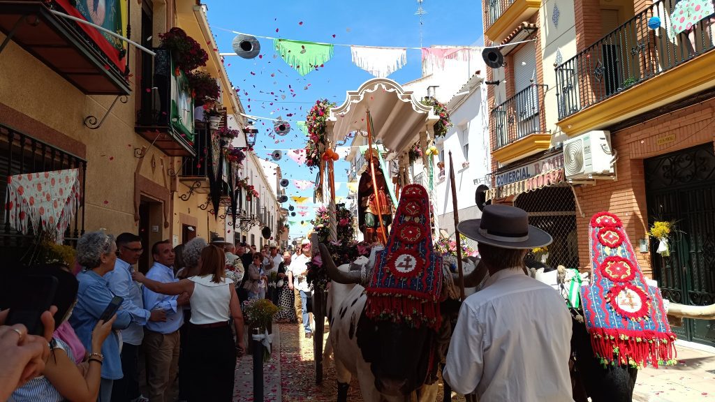 Galería de imágenes de las calles Juan Ramón Jiménez, Montoro y la Plaza España adornadas para el paso de San Isidro Labrador.