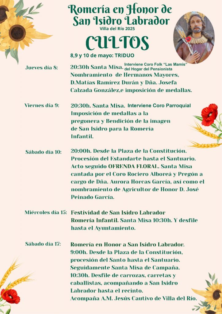 El área de Festejos del Ayuntamiento de Villa del Río comunica que ya está disponible la programación oficial de los Actos Festivos y Religiosos en Honor a San Isidro Labrador 2025, así como el cartel anunciador de esta tradicional celebración.