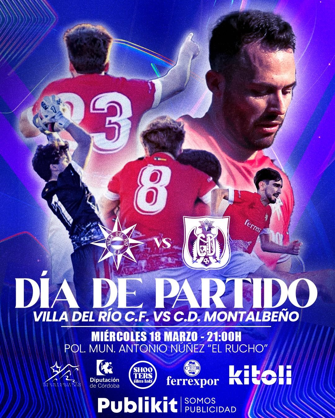 ActualidadDeportes DÍA DE PARTIDO: VILLA DEL RÍO C.F. VS C.D. MONTALBEÑO 17/03/2026 VILLADELRIODIGITAL Miércoles, 18 de marzo de 2026Hora: 21:00 hLugar: Polideportivo Municipal Antonio Núñez “El Rucho”
