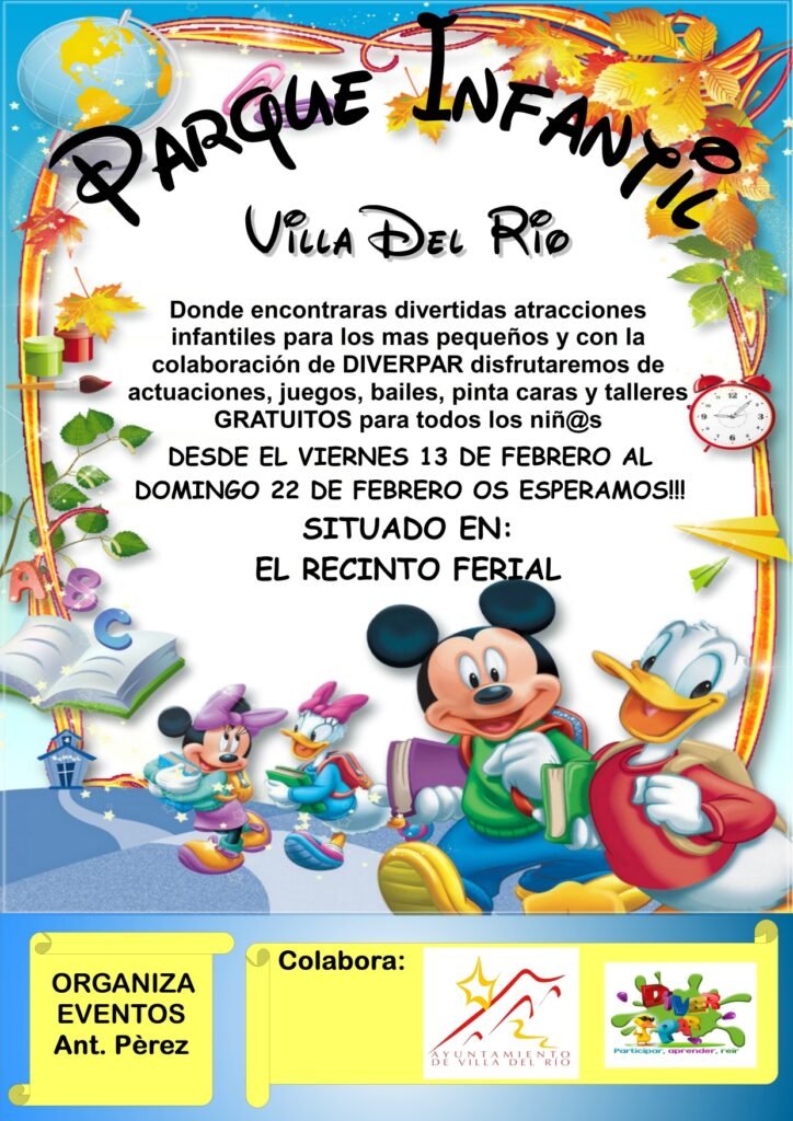 El Ayuntamiento de Villa del Río comunica que el Recinto Ferial albergará, del 13 al 22 de febrero, el Parque Infantil con motivo del Carnaval, un espacio de ocio y convivencia donde los más pequeños podrán disfrutar de atracciones infantiles y de una amplia programación de actividades lúdicas y educativas, con talleres, juegos, bailes y espectáculos gratuitos.