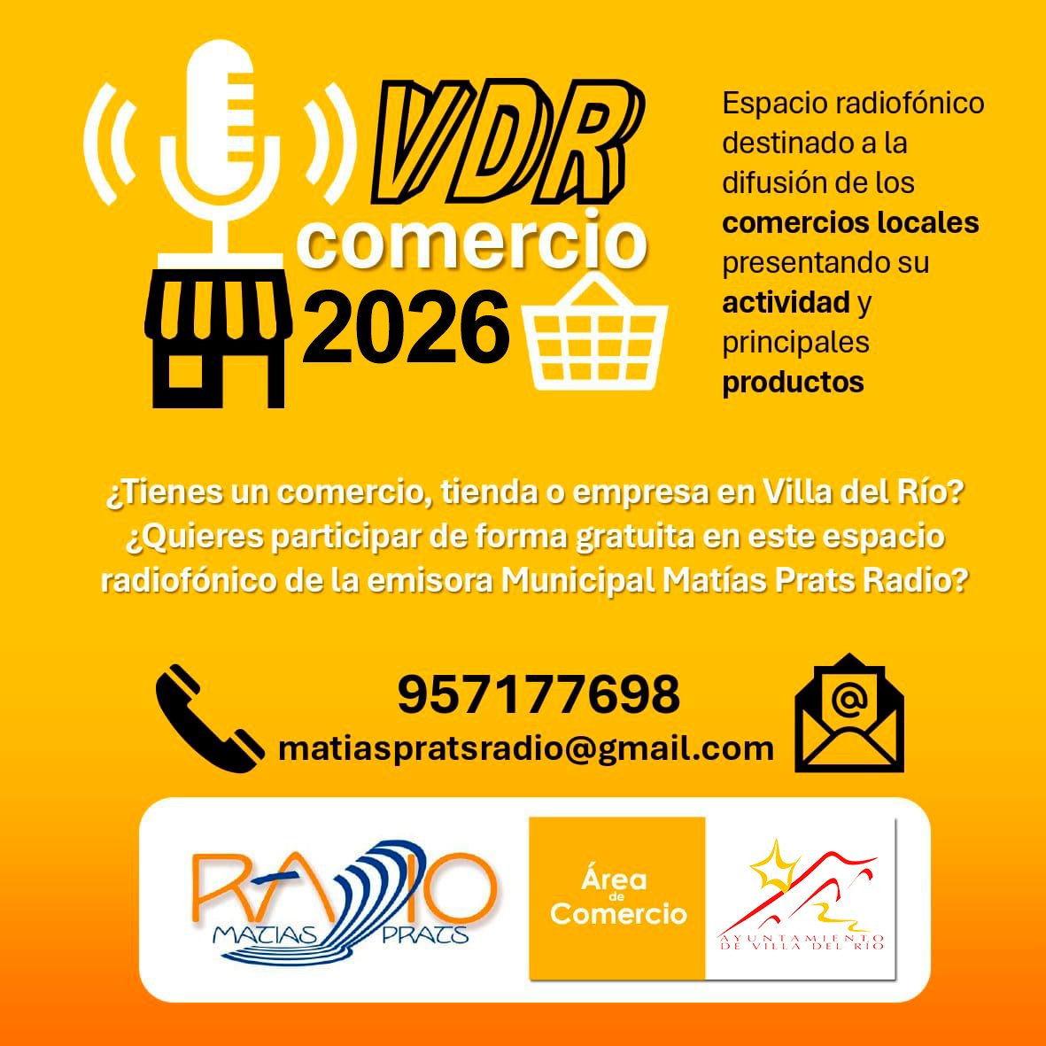 Las áreas de Comercio y Nuevas Tecnologías del Ayuntamiento de Villa del Río comunican que la emisora municipal Matías Prats Radio pone a disposición de todos los comercios, establecimientos y empresas
