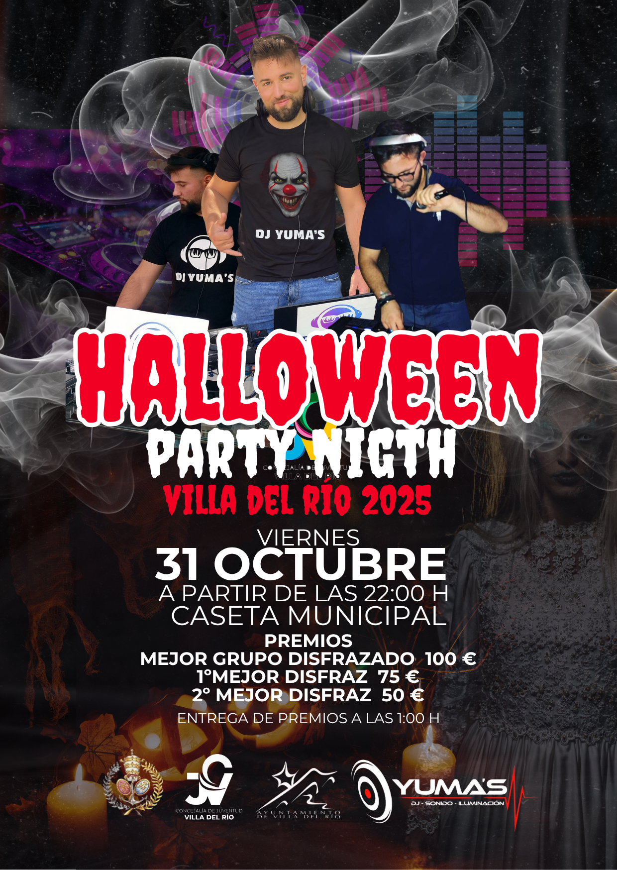 El área de Juventud del Ayuntamiento de Villa del Río organiza la III Edición de la «HALLOWEEN PARTY» en colaboración con la Hermandad y Cofradía de Nazarenos de Ntro. Padre Jesús en su Entrada Triunfal en Jerusalén y Ntra. Madre y Sra. de la Paz y Esperanza.