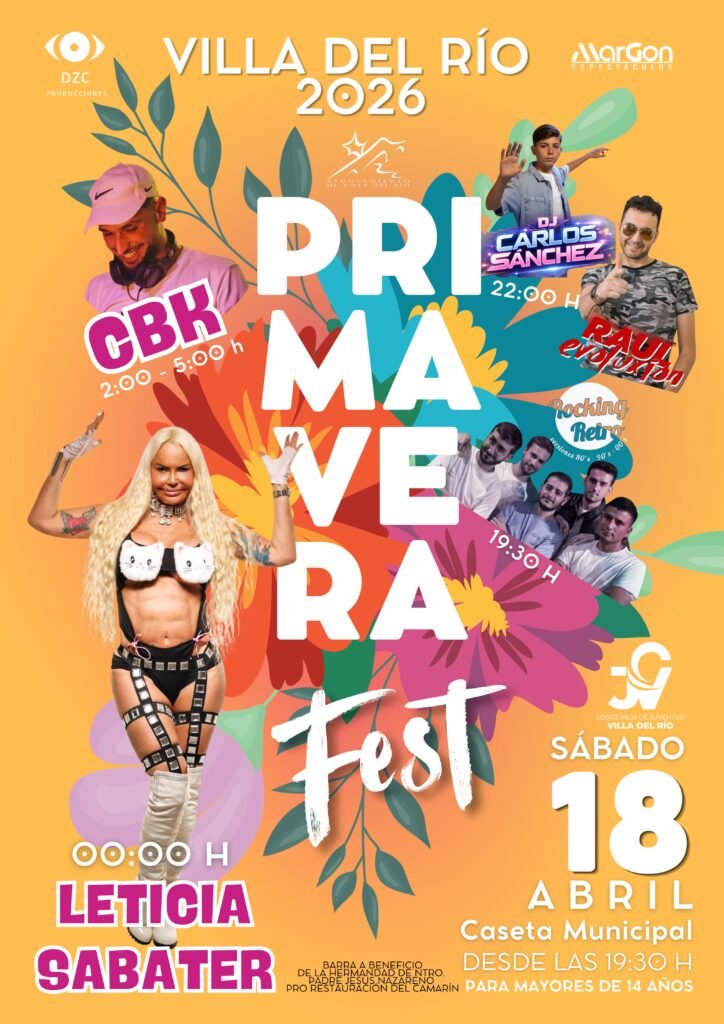 El área de Juventud del Ayuntamiento de Villa del Río organiza la II edición de la PRIMAVERA FEST, una cita musical pensada para jóvenes y público a partir de 14 años, con una noche llena de ritmo, diversión y actuaciones en directo en la Caseta Municipal, en colaboración con DZC Producciones y Margon Espectáculos.