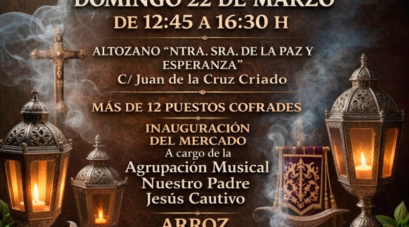 Durante la jornada se podrán visitar más de 12 puestos cofrades, donde se ofrecerán distintos productos y elementos relacionados con el mundo de las hermandades y la Semana Santa.