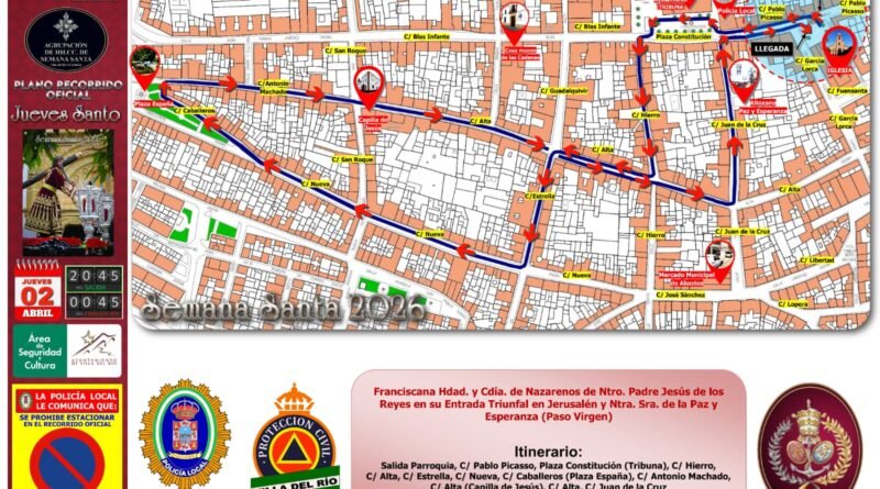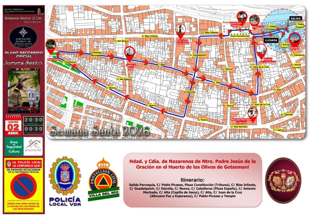 ITINERARIO DE LAS SALIDAS PROCESIONALES DEL JUEVES SANTO | SEMANA SANTA DE VILLA DEL RÍO 2026