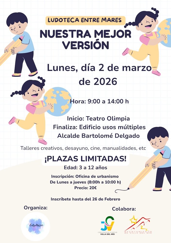 El área de Infancia y Juventud del Ayuntamiento de Villa del Río colabora con la ludoteca organizada por EntreMares, una actividad pensada para que niños y niñas aprendan, convivan y se diviertan a través de juegos, creatividad y valores positivos.