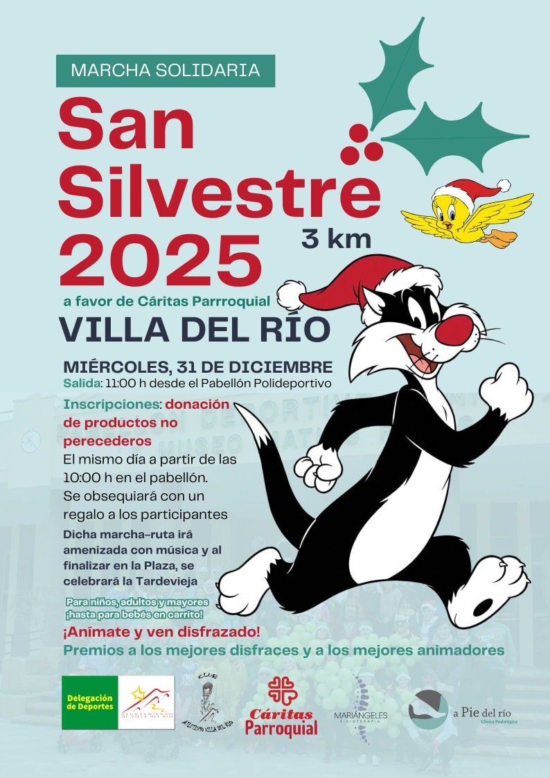 El área de Deportes del Ayuntamiento de Villa del Río organiza, junto al Club de Atletismo de la localidad y Cáritas Parroquial, la Marcha Solidaria “San Silvestre 2025”.