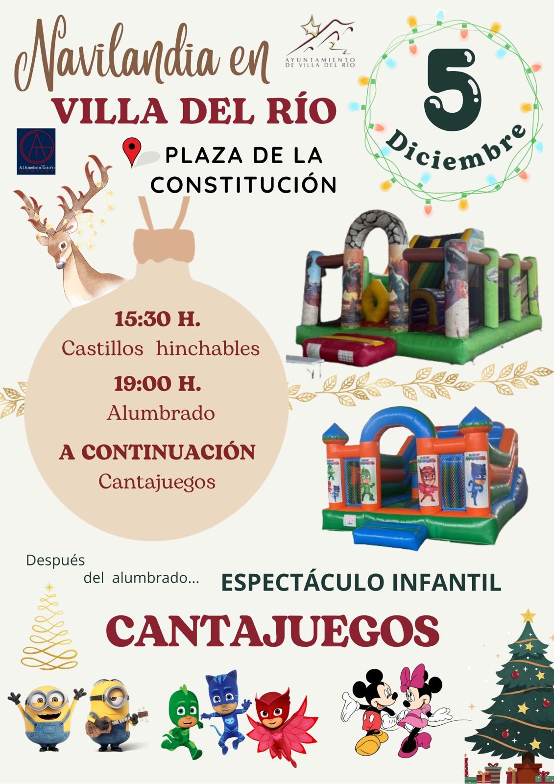 El área de Festejos del Ayuntamiento de Villa del Río invita a todas las familias a disfrutar de una tarde llena de diversión, ilusión y espíritu navideño en la Plaza de la Constitución el viernes, 5 de diciembre de 2025.