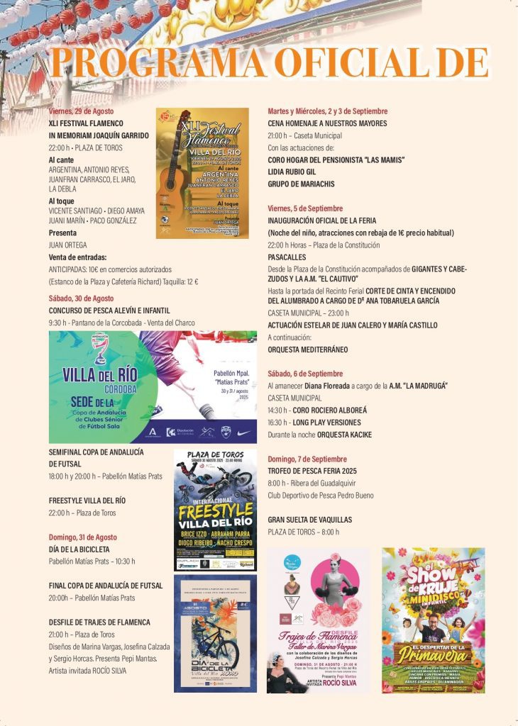 El área de Festejos del Ayuntamiento de Villa del Río publica el programa oficial de la feria de Villa del Río 2025 en honor a Ntra. Sra. de la Estrella Coronada, con un amplio abanico de actividades para todos los públicos.