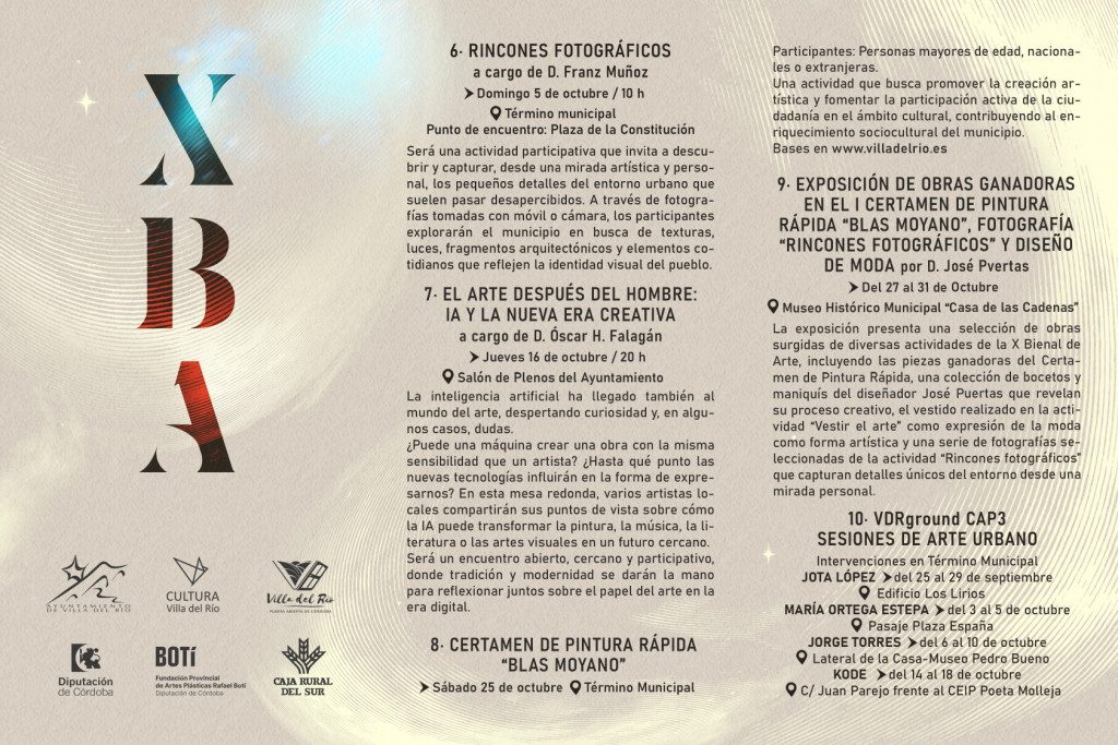 Programación de actividades de la X Bienal de Arte de Villa del Río