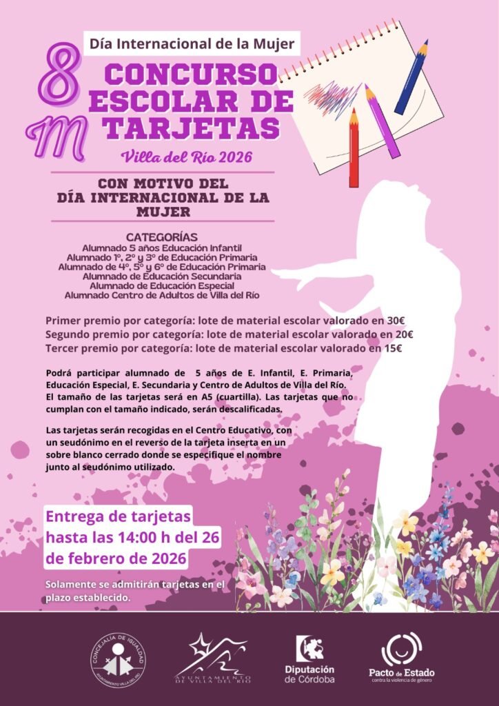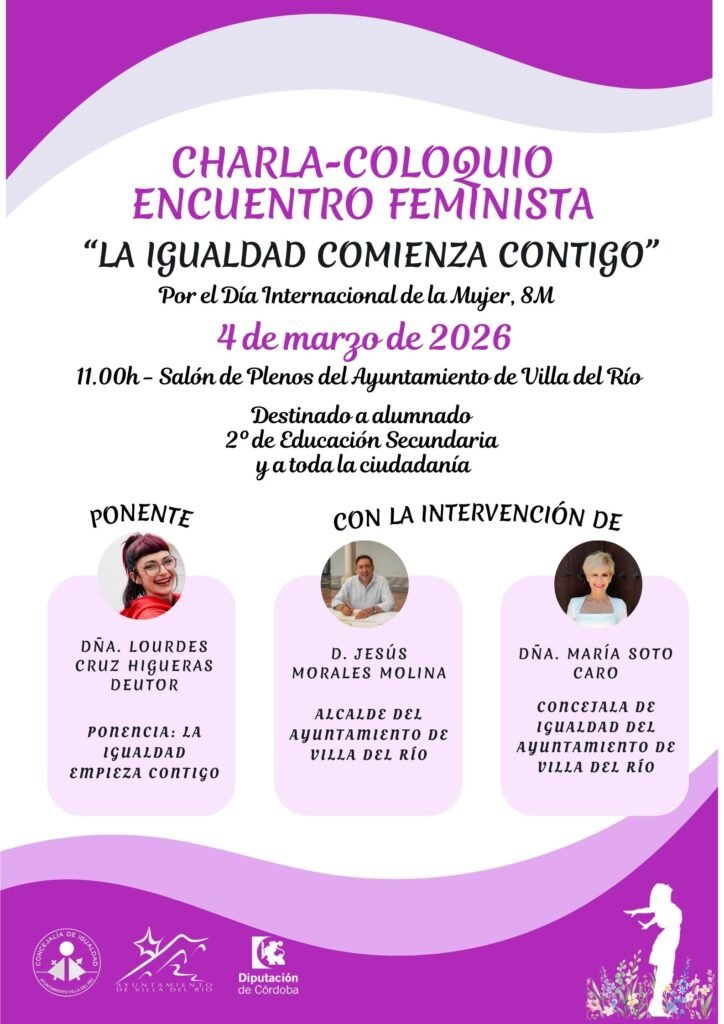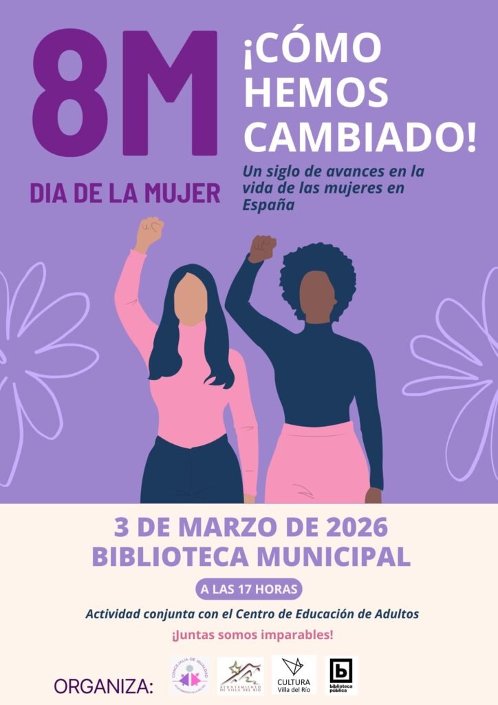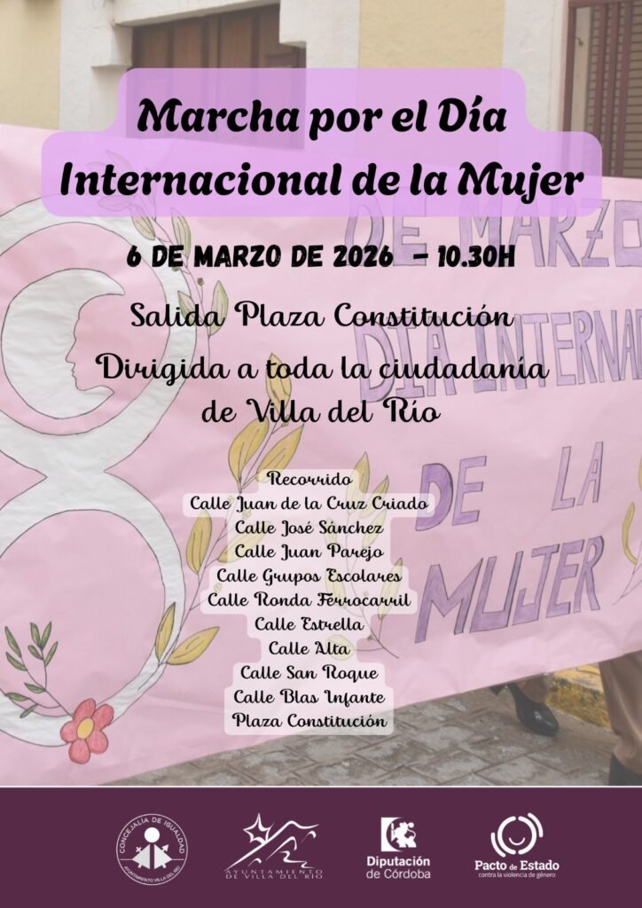 El área de Igualdad del Ayuntamiento de Villa del Río da a conocer los actos que organiza y en los que colabora con motivo de la celebración del Día Internacional de la Mujer (8M), enmarcados dentro de la “Semana de la Mujer” 2026.