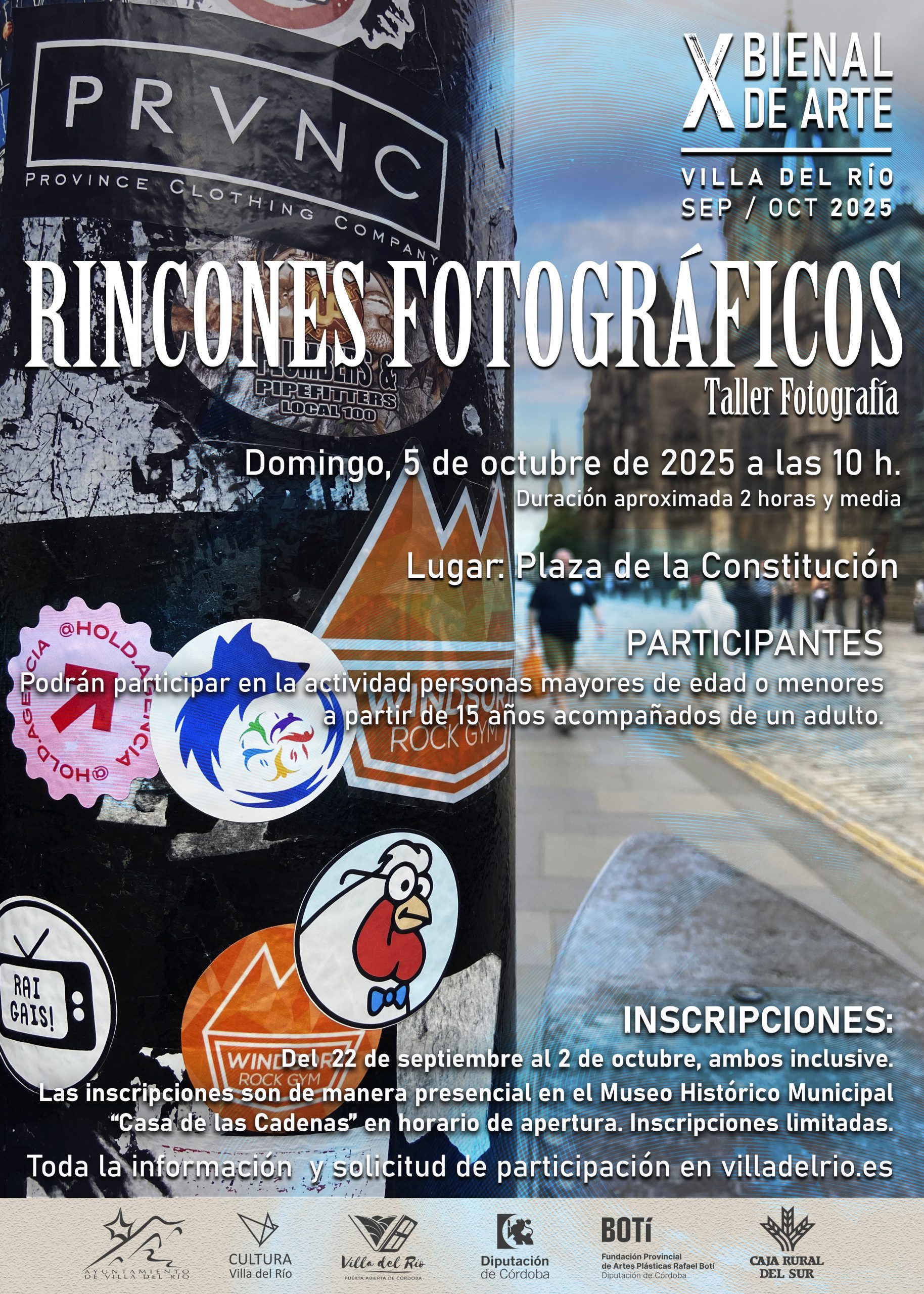 El área de Cultura del Ayuntamiento de Villa del Río comunica que, con motivo de la X Bienal de Arte, se va a desarrollar un taller de fotografía titulado «Rincones fotográficos», a cargo de D. Franz Muñoz.