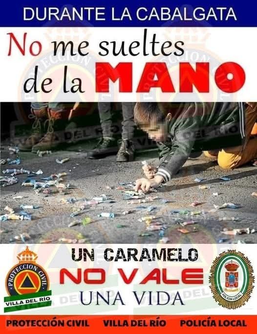 Durante el recorrido de la cabalgata, no sueltes a los niños de la mano. Un caramelo, un juguete, no vale una vida.