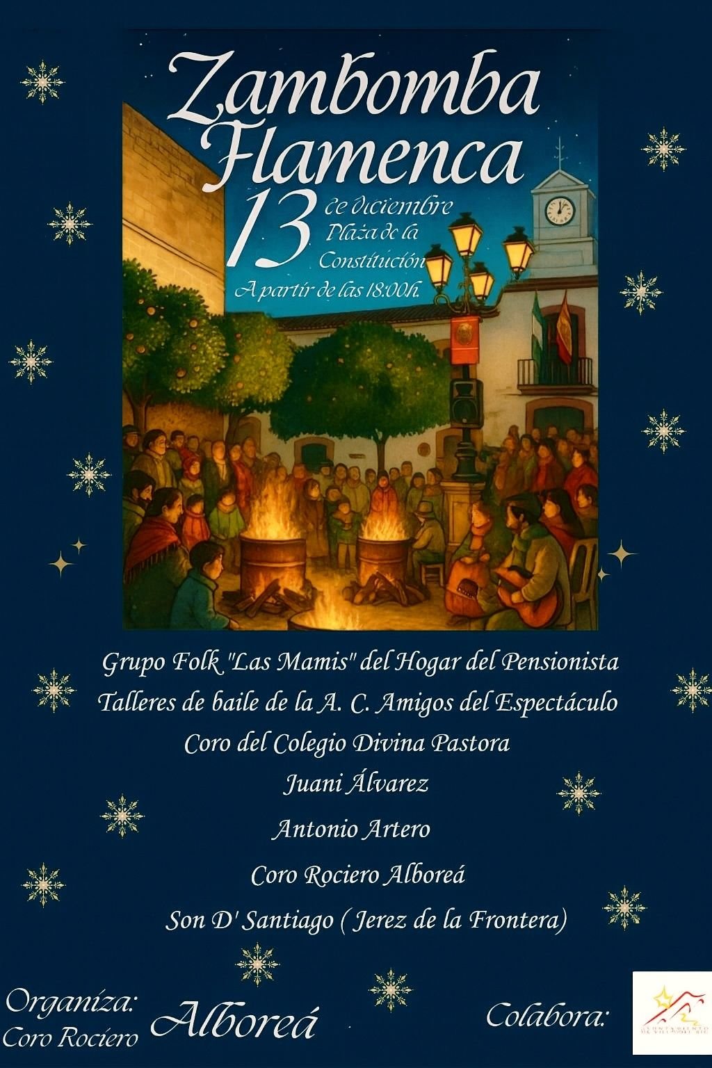 El área de Festejos del Ayuntamiento de Villa del Río informa que el próximo 13 de diciembre, a partir de las 18:00 h, la Plaza de la Constitución acogerá una nueva edición de la Zambomba Flamenca, una cita ya tradicional en nuestro calendario navideño.